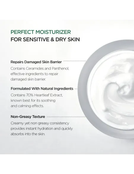 Heartleaf 70% Intense Calming Cream by ANUA is your essential ally to soothe and revitalize sensitive and irritated skin. Formulated with 70% Heartleaf extract, this cream provides immediate and long-lasting relief, helping to reduce redness and irritation. Additionally, its lightweight yet intensely hydrating formula strengthens the skin's protective barrier, leaving it soft, supple, and well-hydrated.